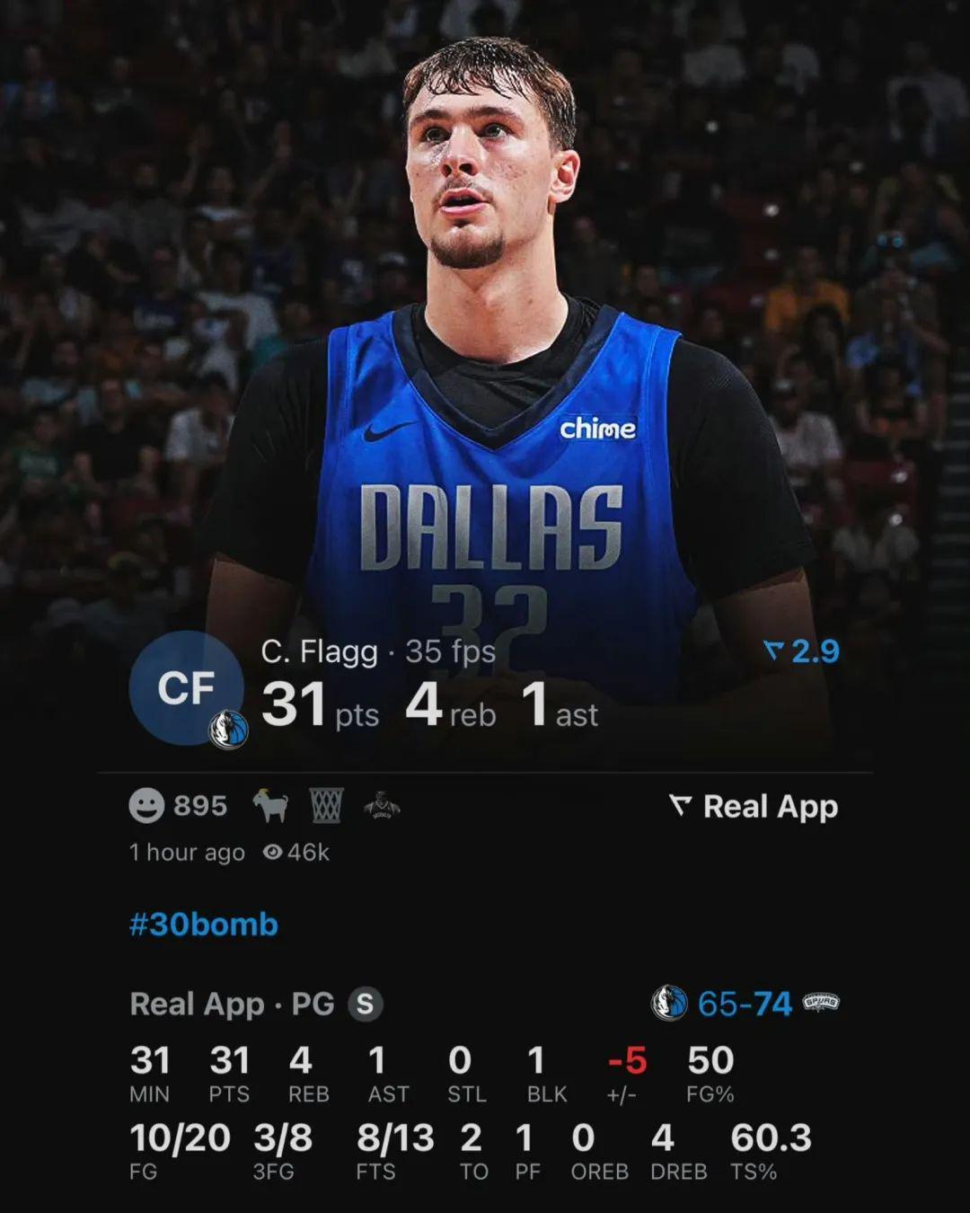 而弗拉格虽然斩获了31分,数据力压榜眼